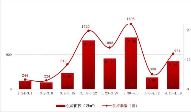 上周(4.13-4.19)长春新增商品住宅供应面积约9.35万㎡,新增套数约921套,
