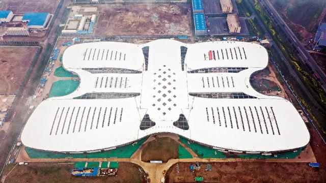 6日,俯瞰东北亚(长春)国际机械城会展中心,犹如一只振翅的蝴蝶。该项目位于长德经济开发区,总占地面积21万平方米,总建筑面积13.5万平方米,计划总投资20亿元。目前,项目建设正稳步推进。项目建成后将成为全国较大的机械展销综合体。
